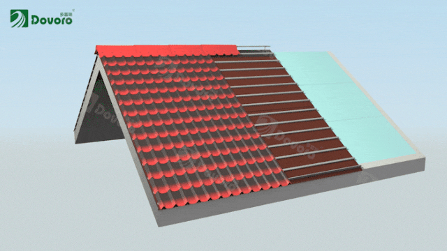 在傳統(tǒng)屋面系統(tǒng)中,滲漏更多發(fā)生于節(jié)點接縫位置,使整個屋面系統(tǒng)的防水功能潰于蟻穴。多富瑞通過科學(xué)的節(jié)點設(shè)計,配合脊瓦、溝瓦、邊瓦等配套輔材,可加強細節(jié)處的防水,提升屋面整體防水性能。