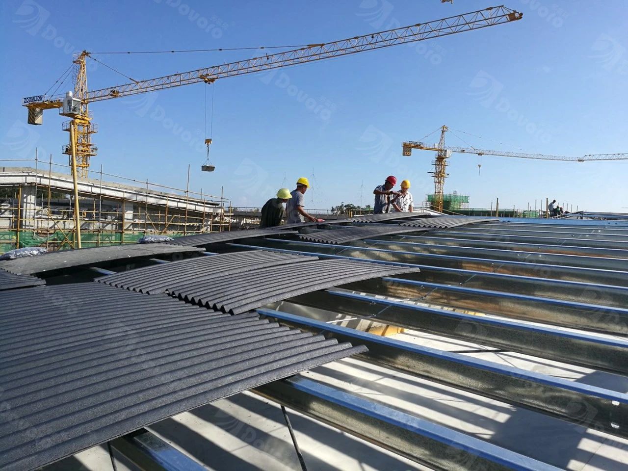 波形瀝青瓦主要成分為礦植物纖維與瀝青,雨水落到屋頂時(shí)產(chǎn)生的噪音極小,對(duì)建筑內(nèi)正常交流及生產(chǎn)工作不產(chǎn)生影響。對(duì)于養(yǎng)殖場(chǎng)等對(duì)噪音敏感的業(yè)態(tài)極其友好。