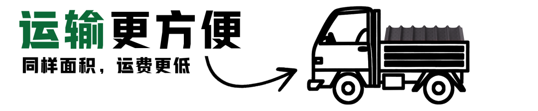 輕質的材料對運輸有十分重要的影響。更輕的重量,就意味著同樣面積的瓦材,波形瀝青瓦的運費更低,運輸更方便。