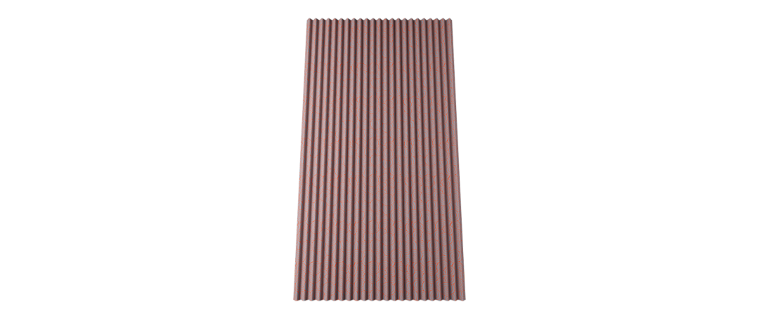 一塊多富瑞波形瀝青防水板,尺寸為長2000mm×寬1110mm,面積2.22㎡,厚度2.6mm,整張重量為7.1kg,每平方的重量僅約為3.2kg。